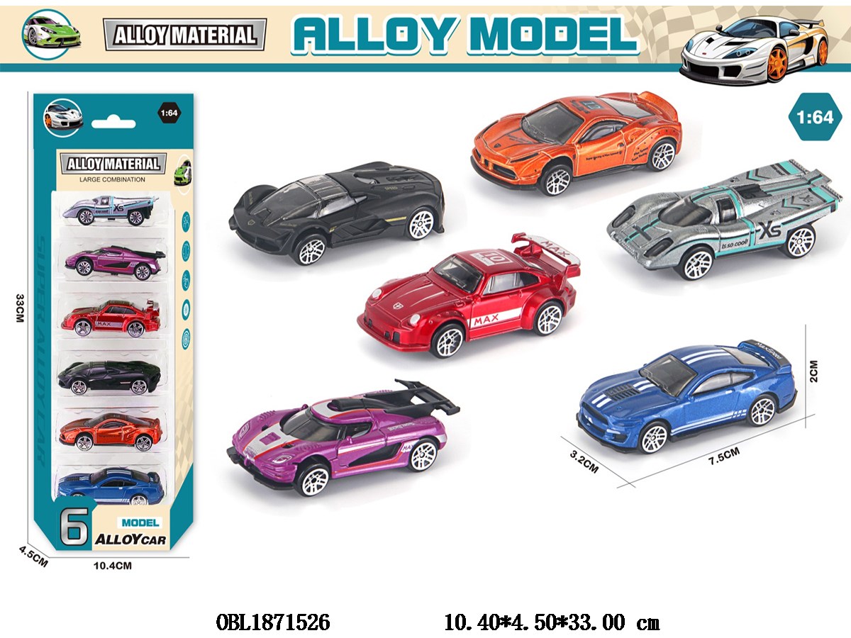 6只装1:64合金滑行车 6款混装