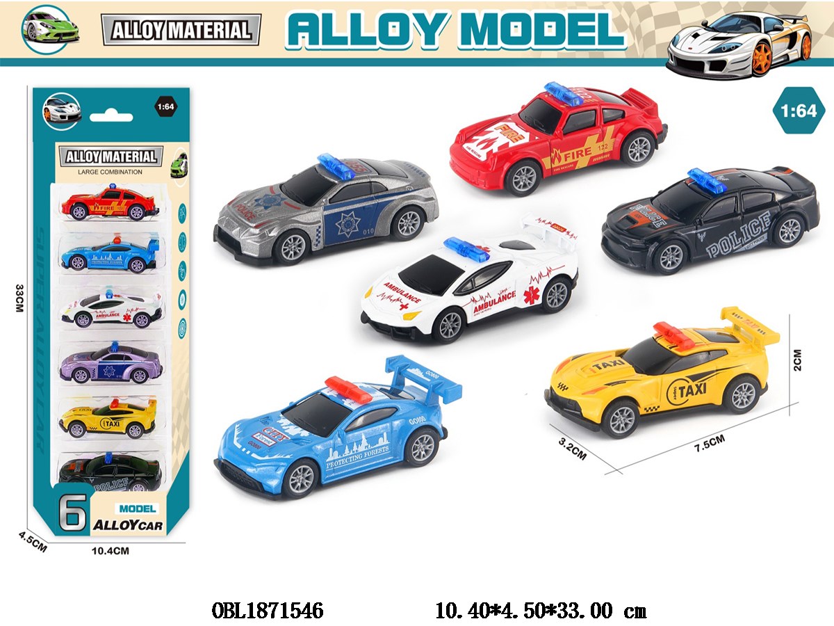 6只装1:64合金滑行车 6款混装