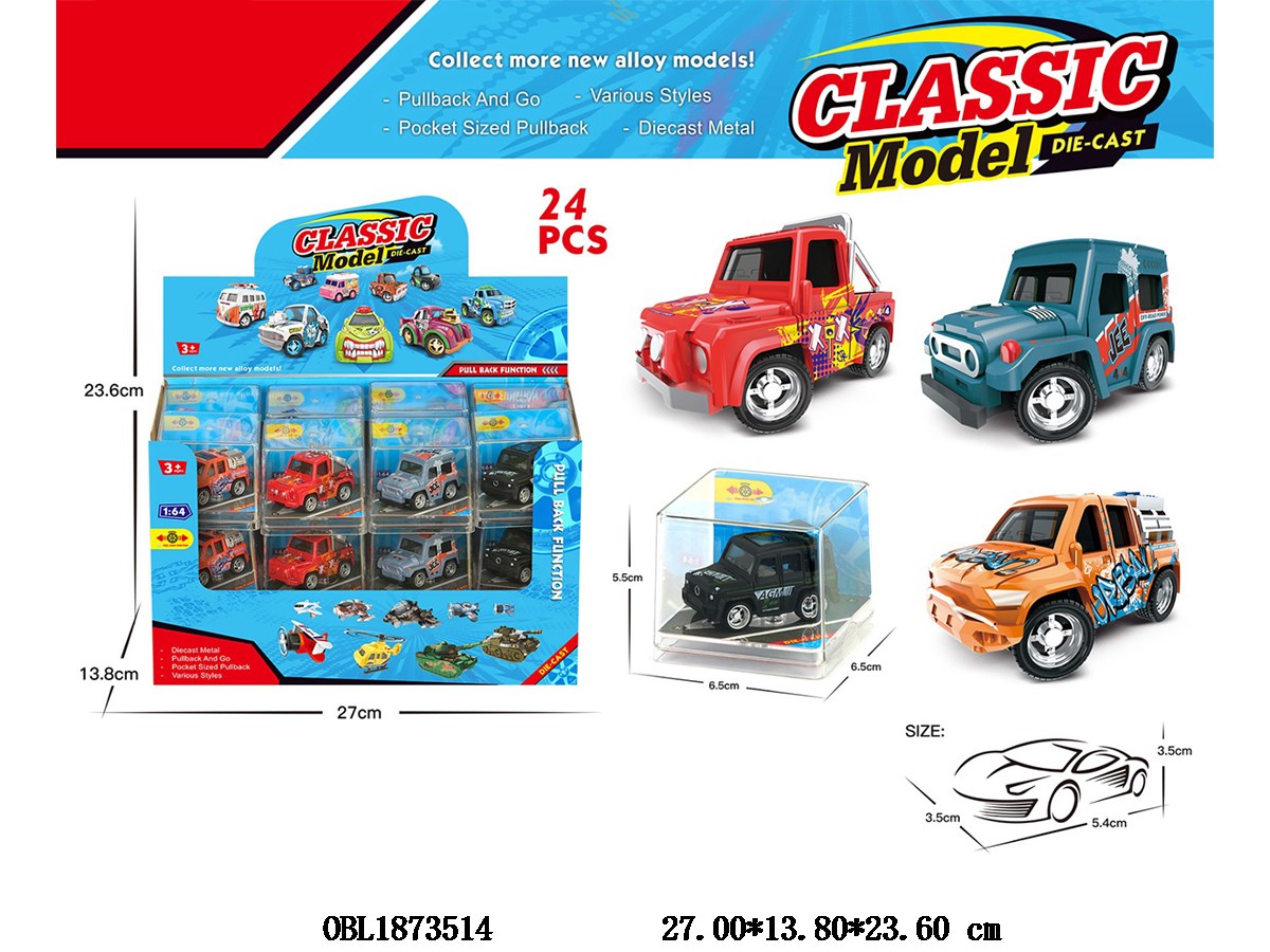 首页 > 合金车 > 合金回力越野车 4款混装 24盒装1展示盒