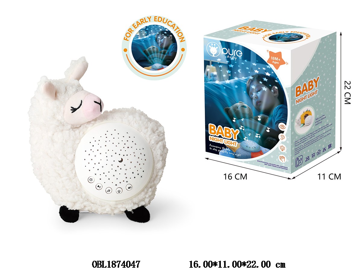 婴儿毛绒安抚羊驼带灯光音乐投影 3*AA不包电