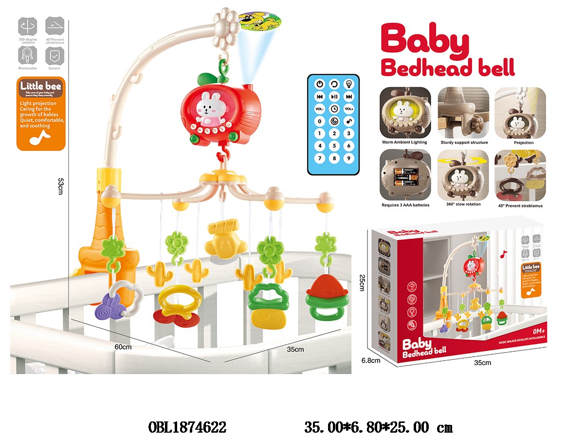 首页 > 电动床头铃 > 红色遥控苹果床头铃带灯光音乐 3*AAA无包电 遥控器1*CR2025包电