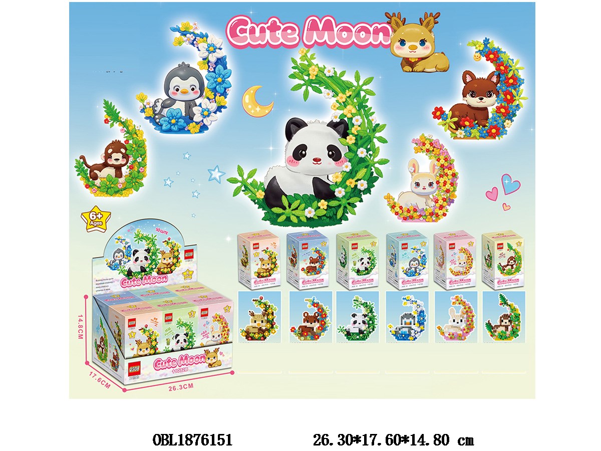 中英文版益智积木 月亮动物公仔 6款混装 6小盒装一展示盒