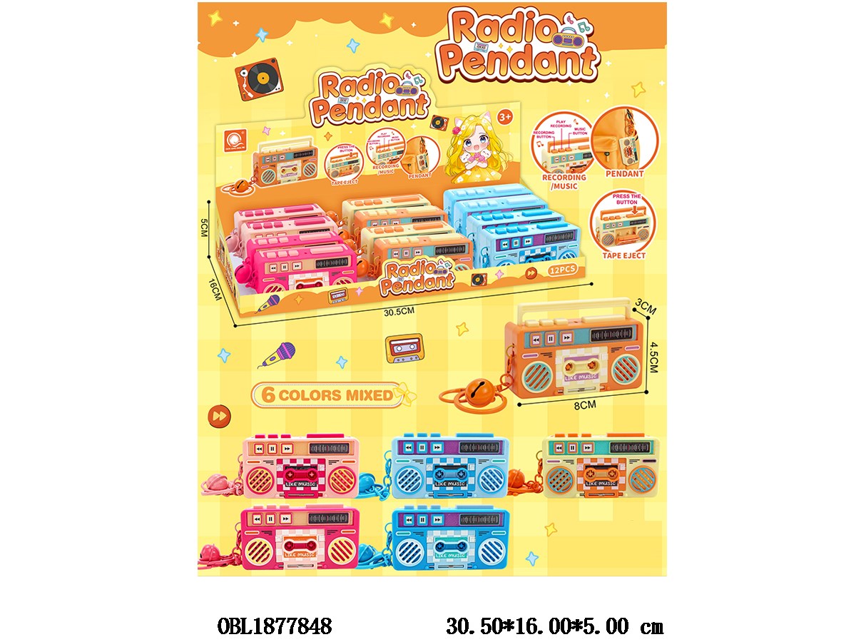 首页 > 钥匙扣 > 录音机钥匙扣带音乐 可录音 3*AG13包电 6色混装 12个装一展示盒