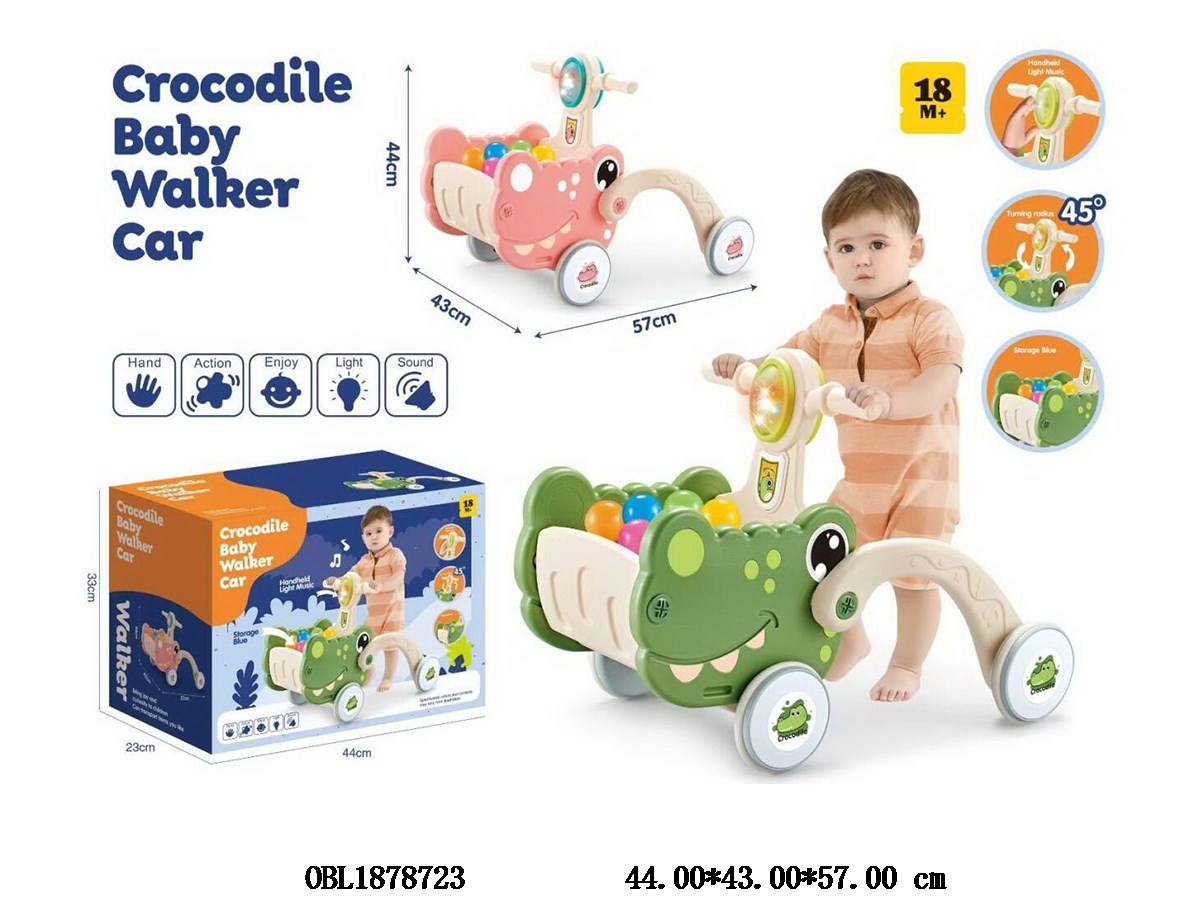 首页 > 婴儿学步车 > 儿童鳄鱼收纳学步车带灯光音乐 3*AA不包电 2色混装