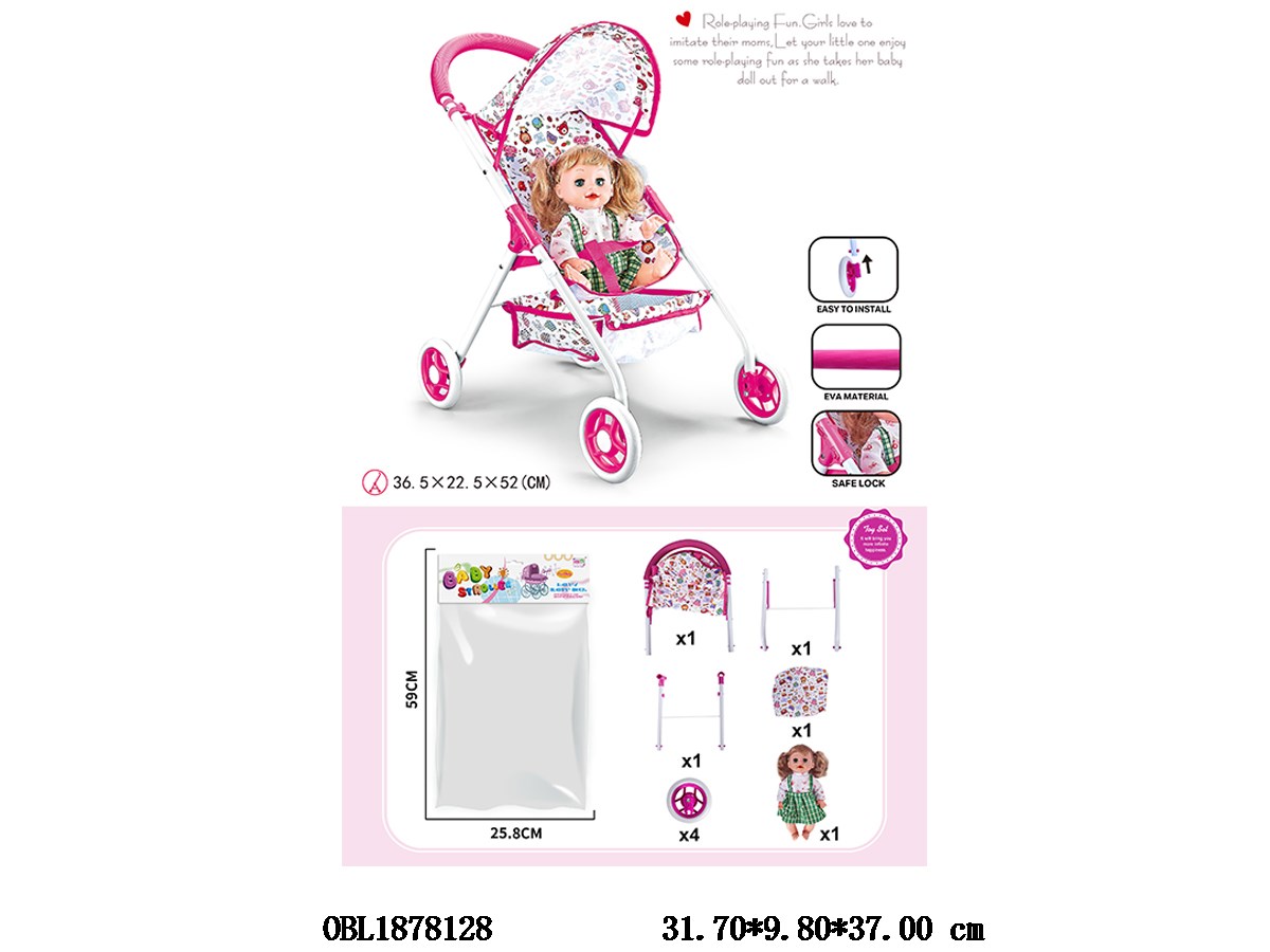 首页 > 公仔推车 > 公仔自装EVA轮铁制推车配16寸空身娃娃 主体衣服1款1色