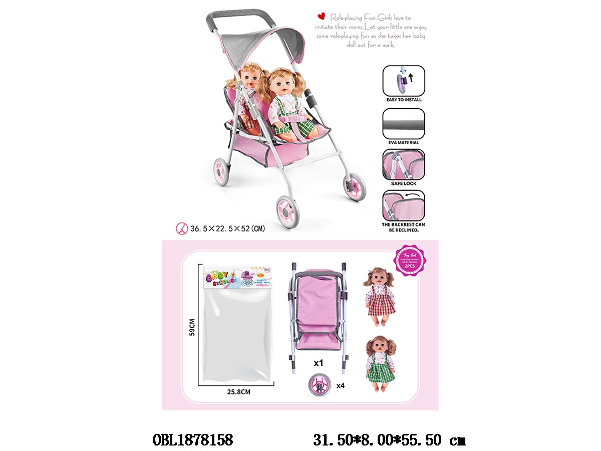 公仔自装EVA轮双座铁制推车配2只16寸空身娃娃 主体衣服1款1色