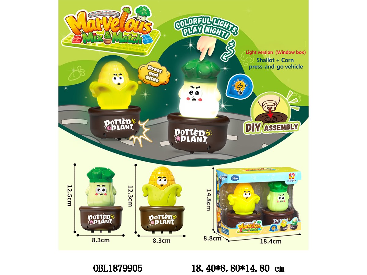 首页 > 压力车 > 2只装按压果蔬车带灯光 可DIY拆卸 搭载积木底座 各3*AG13包电