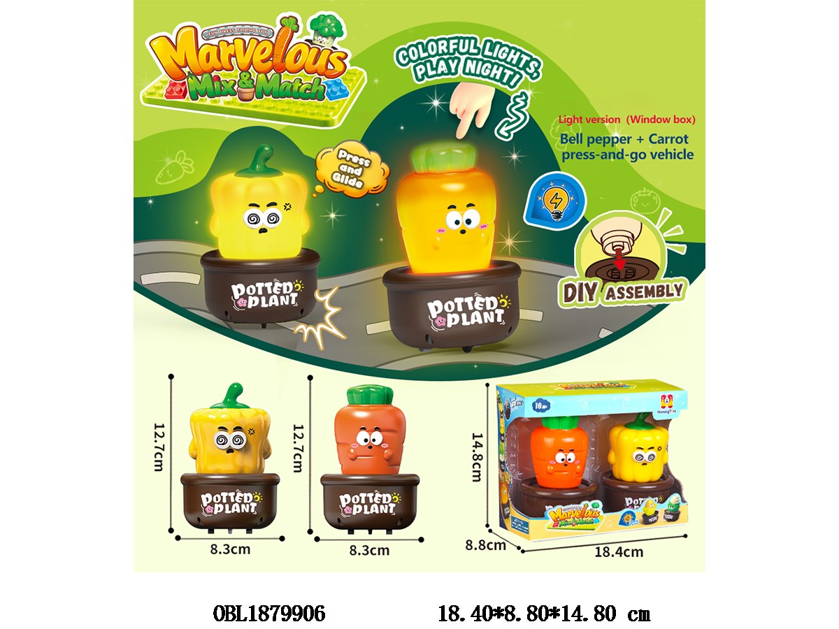 首页 > 压力车 > 2只装按压果蔬车带灯光 可DIY拆卸 搭载积木底座 各3*AG13包电