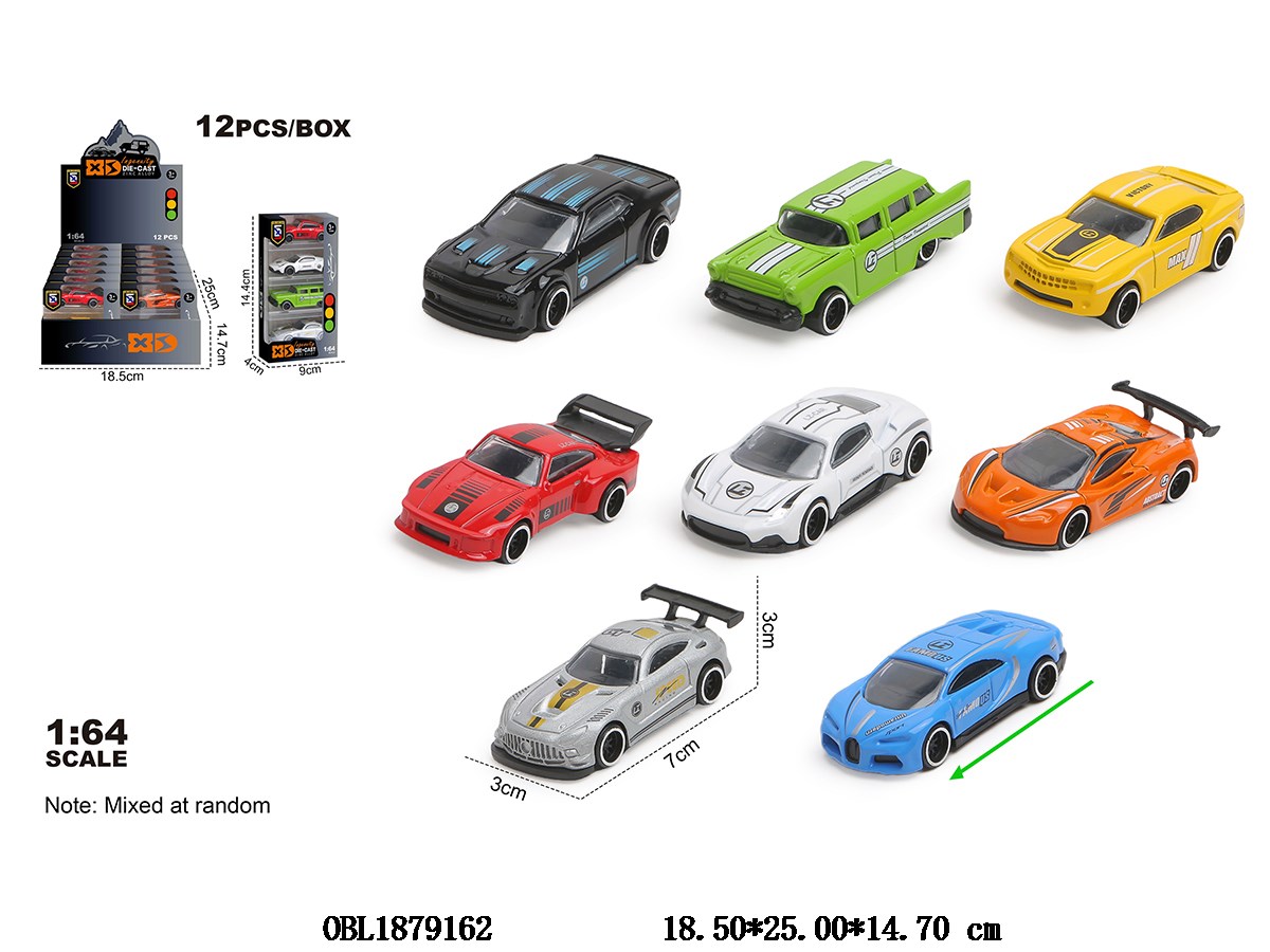 1:64锌合金滑行车 8款随机混装 4只装一小盒 12小盒装一展示盒