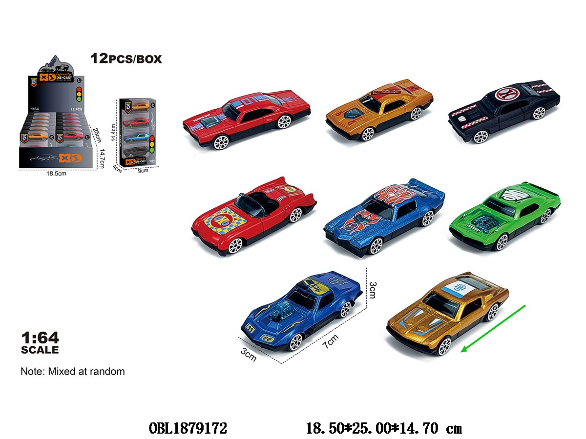 1:64锌合金滑行车 8款混装 4只装一小盒 12小盒装一展示盒