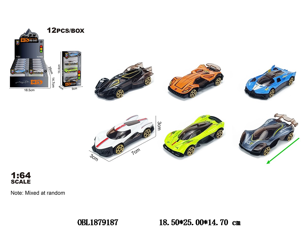 1:64锌合金滑行车 6款混装 4只装一小盒 12小盒装一展示盒