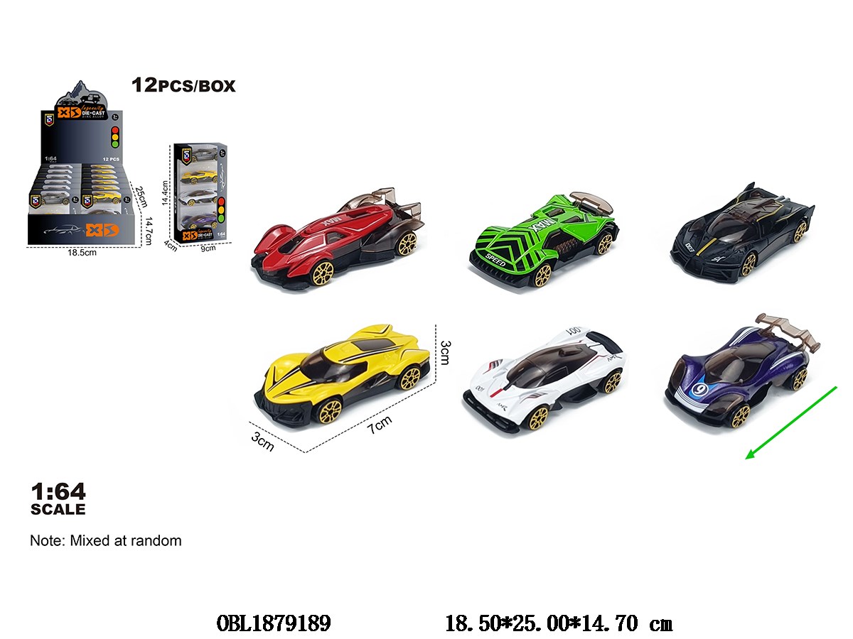 1:64锌合金滑行车 6款混装 4只装一小盒 12小盒装一展示盒