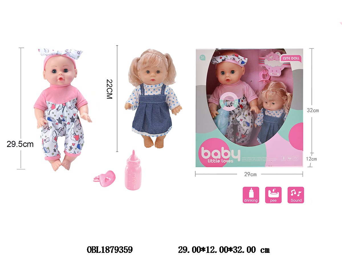12寸空身喝水尿尿活眼公仔套装配9寸空身芭芘 带四声IC 3*AG13包电 衣服1款1色