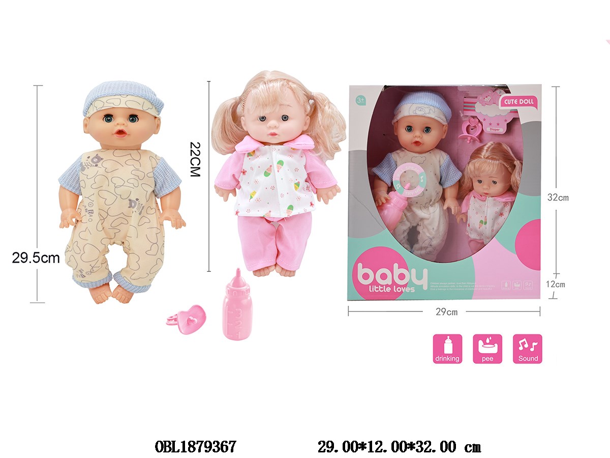 12寸空身喝水尿尿活眼公仔套装配9寸空身芭芘 带四声IC 3*AG13包电 衣服1款1色