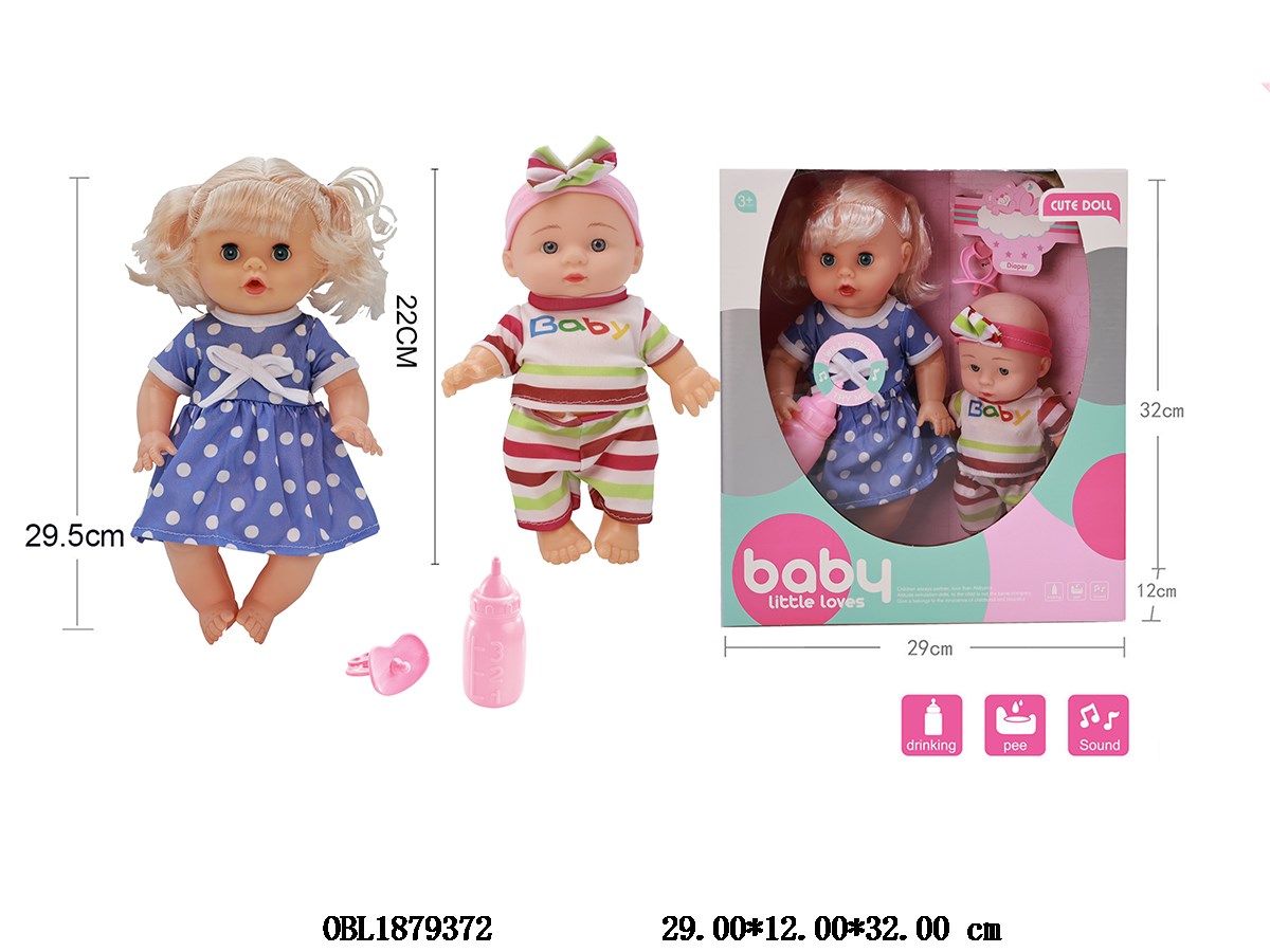 12寸空身喝水尿尿活眼公仔套装配9寸空身芭芘 带四声IC 3*AG13包电 衣服1款1色