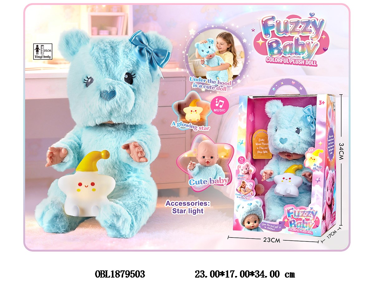首页 > 带IC芭芘公仔 > 14寸套头毛绒娃娃 带音乐IC 小夜灯 3*AG13包电 主体衣服1款1色