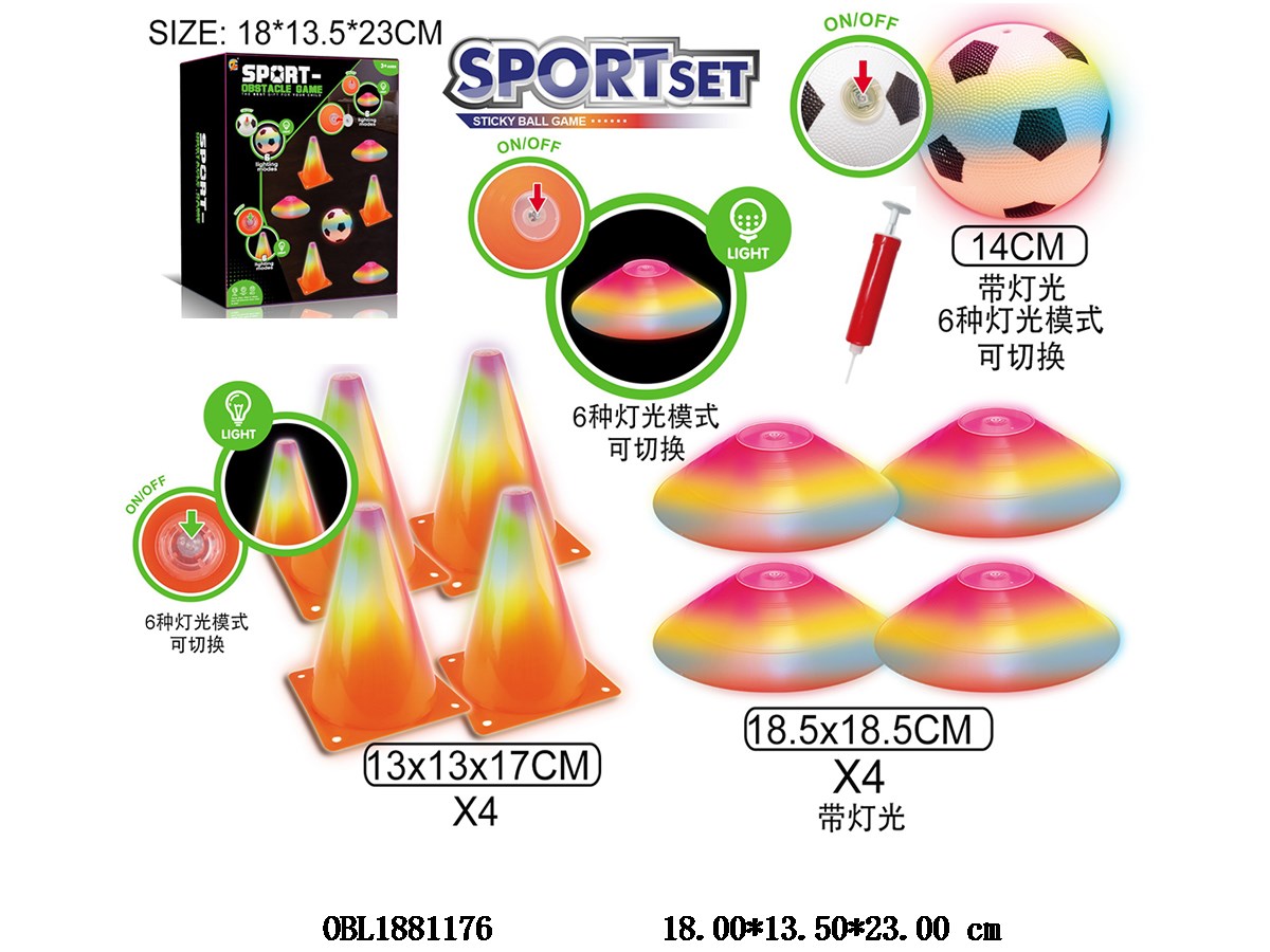 足球/障碍物套装 配1粒灯光足球 3*AG13包电 4*障碍物 4*路障 各3*AG3包电 球出厂无充气