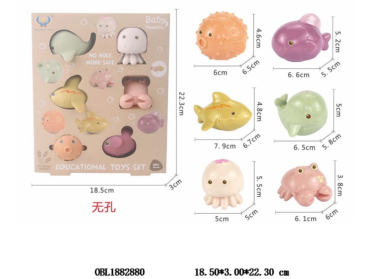 6只装麦秆料软胶无孔海洋动物套装