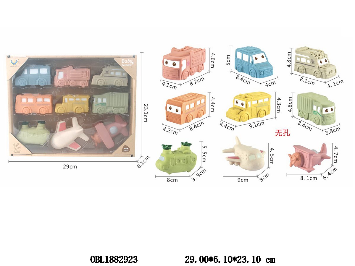 首页 > 其它搪塑玩具 > 9只装麦秆料无孔软胶卡通飞机车