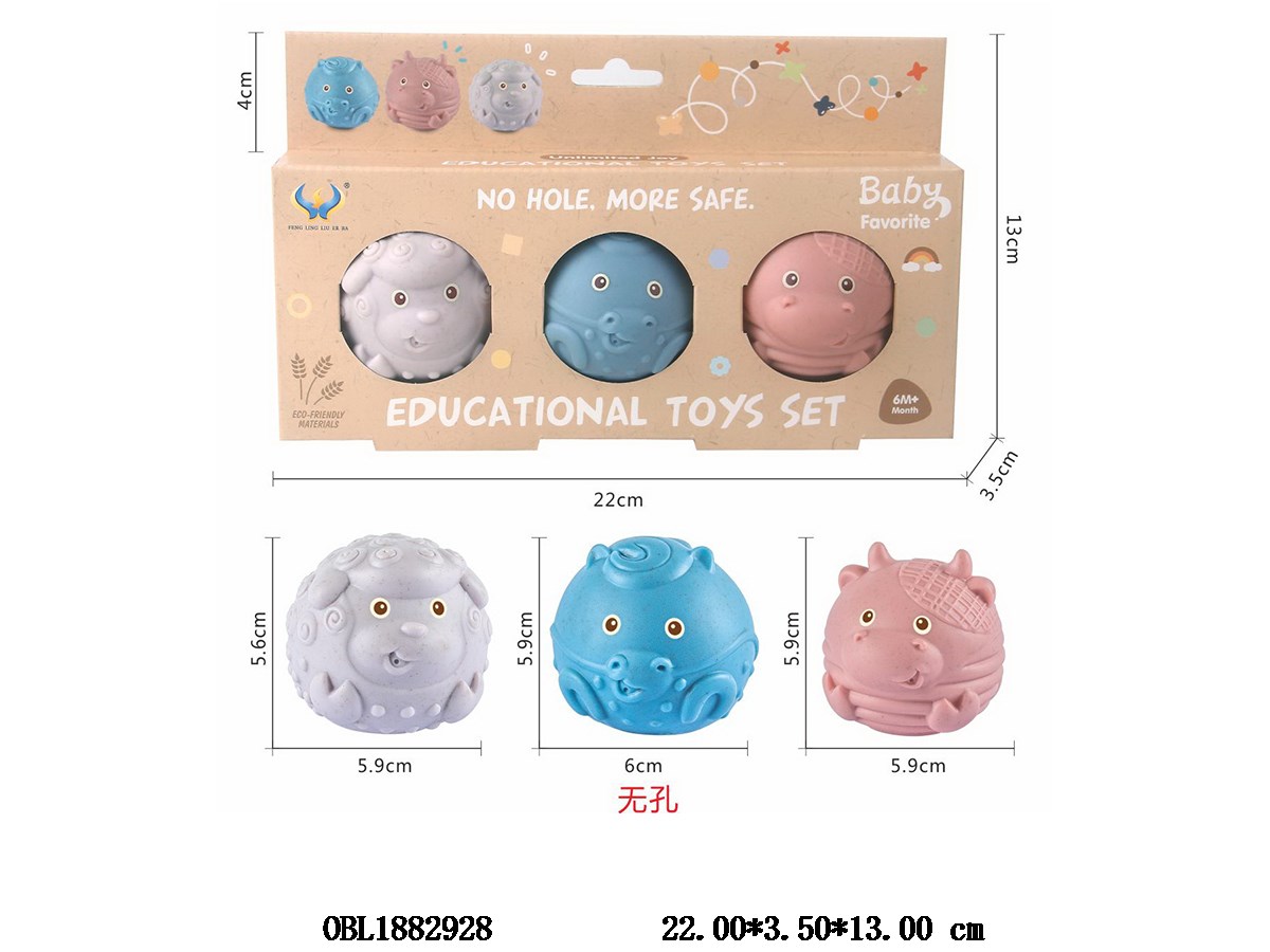 3只装麦秆料无孔软胶戏水动物球
