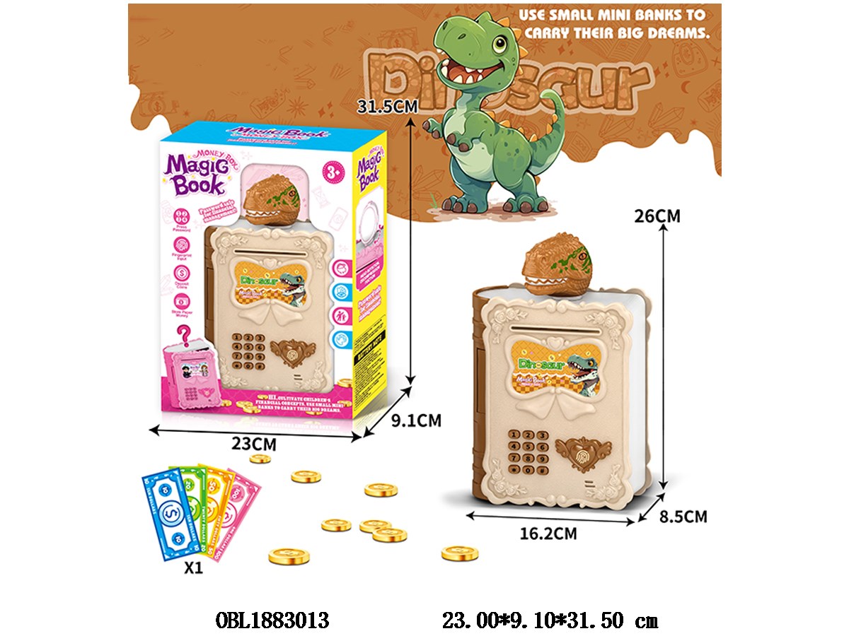 魔法书 卡通存钱罐 带灯光音乐密码 /模拟指纹 /自动开门 /自动卷钱 3*AA不包电 恐龙