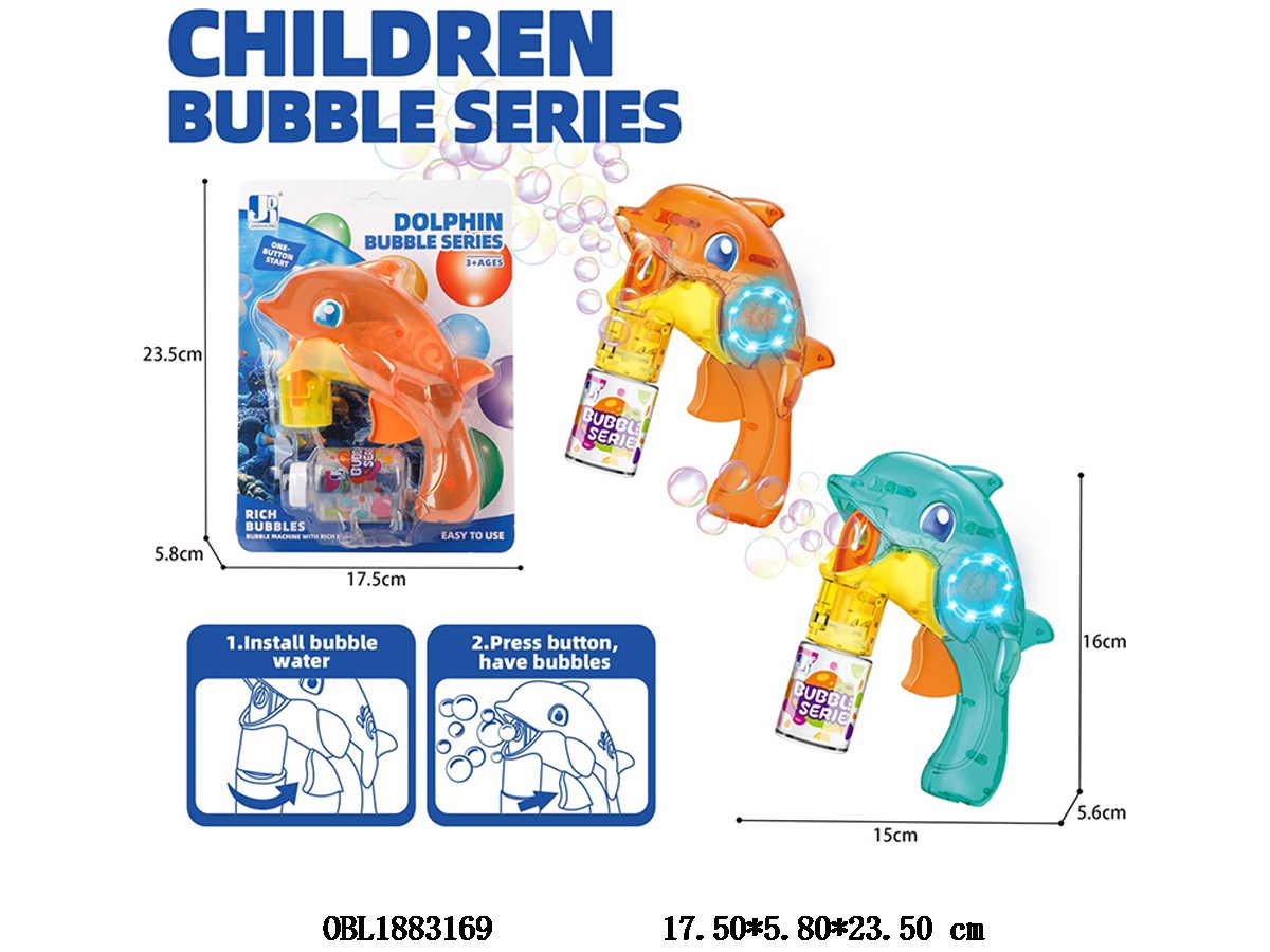 惯性海豚泡泡枪带灯光配70ML泡泡水 2*AG3包电 2色混装