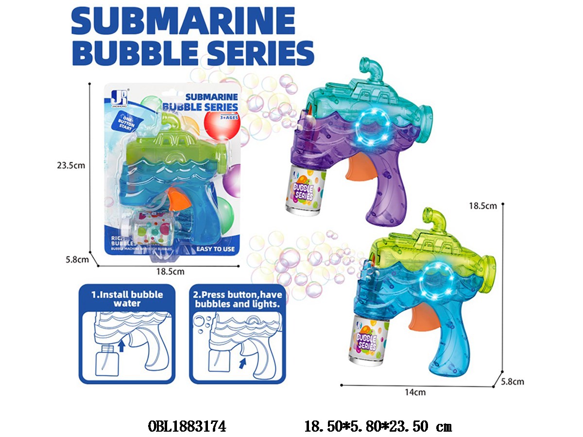 首页 > 惯性泡泡枪 > 惯性轮船泡泡枪带灯光配70ML泡泡水 2*AG3包电 2色混装