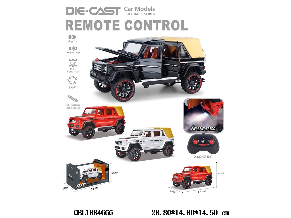 1:22遥控合金车带灯光喷雾 可开门 配USB线 车身3.7V包电 遥控器2*AA不包电 2.4G 3色混装