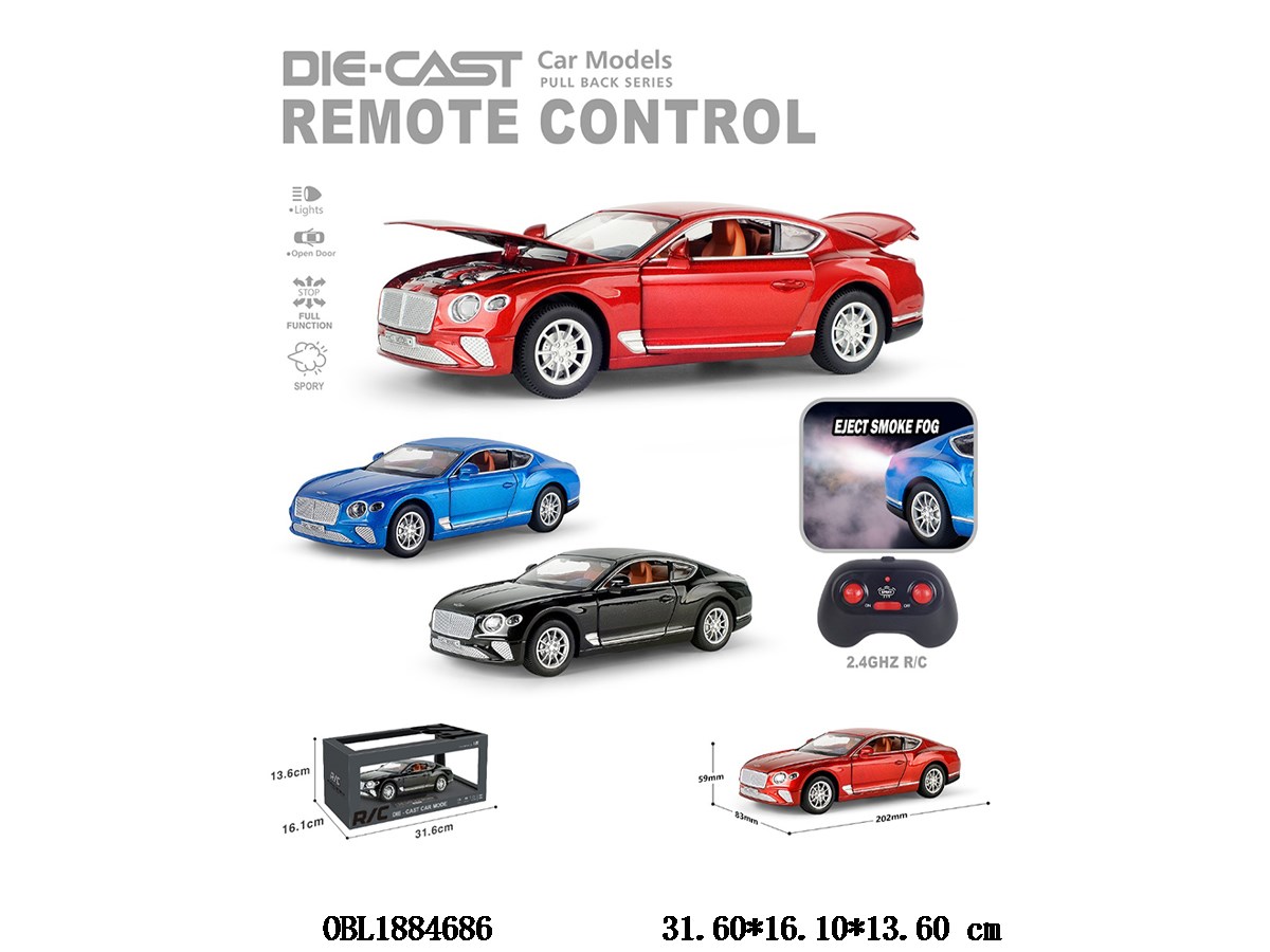 1:22遥控合金车带灯光喷雾 可开门 配USB线 车身3.7V包电 遥控器2*AA不包电 2.4G 3色混装
