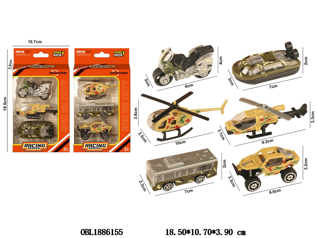 3只装滑行军事车/飞机/摩托车/船艇 6款混装