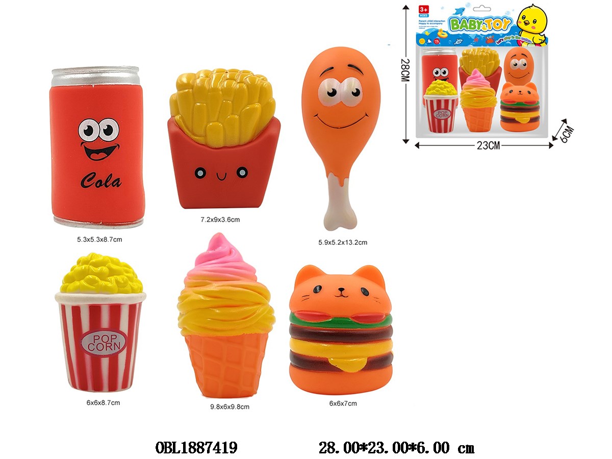 首页 > 其它搪塑玩具 > 6只装搪胶汉堡系列套装 带BB哨