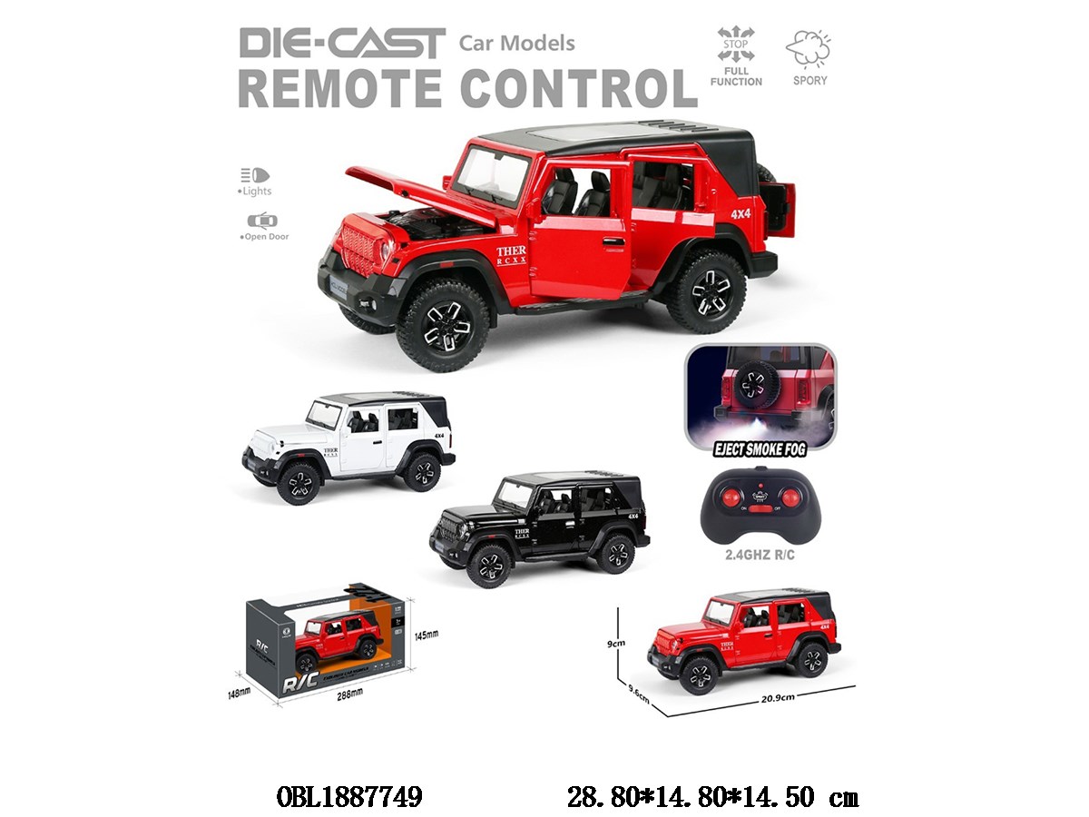 遥控合金车带灯光喷雾 配USB线 车身3.7V锂电池包电 遥控器2*AA不包电 2.4G频率 3色混装
