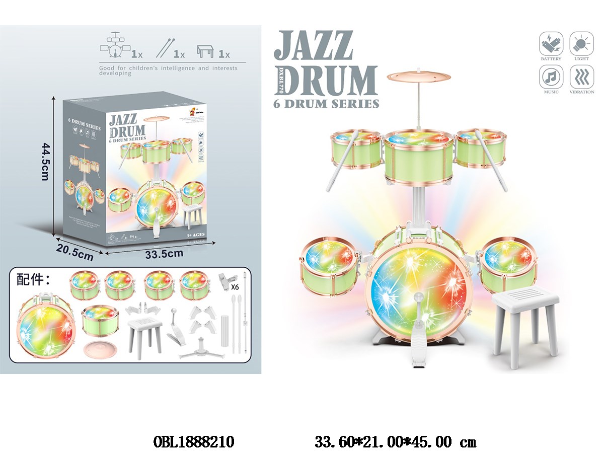爵士鼓套装 配椅子 带灯光音乐 6*AA不包电