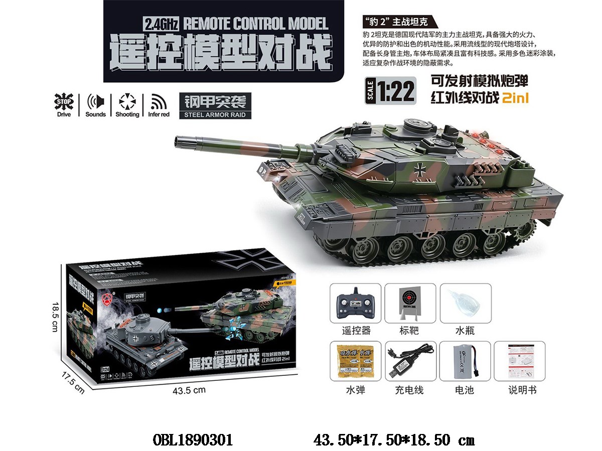 首页 > 遥控坦克 > 中英文遥控坦克带声音配USB线 车身3.7V锂电池包电 遥控2*AA不包电 2.4G频率