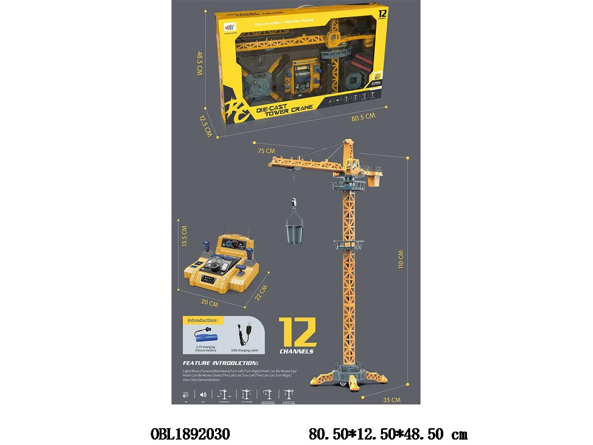 首页 > 其它遥控玩具 > 十二通遥控合金吊塔配USB线 主体3.7V锂电池包电 遥控器3*AA不包电 2.4G频率