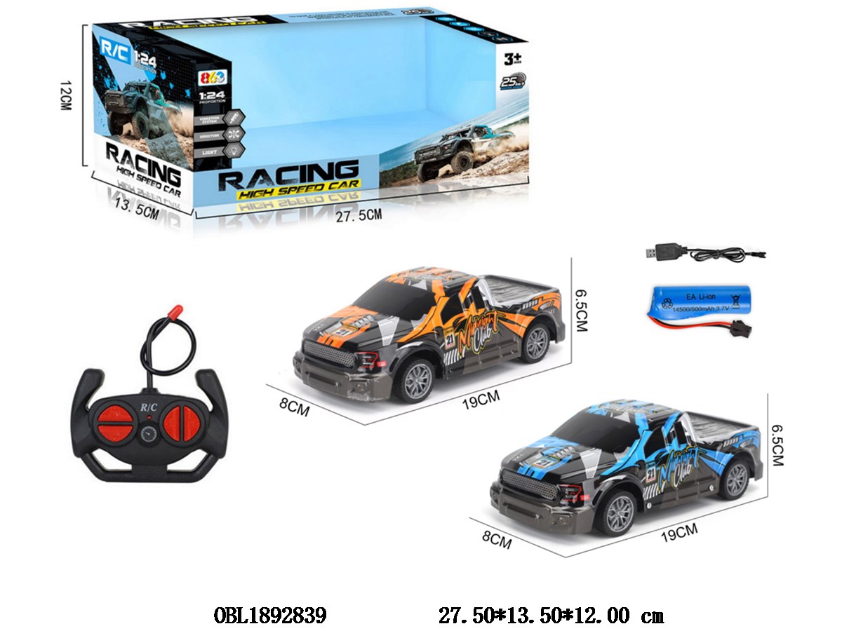 1:20四通遥控高速越野车带灯光 配USB线 车身3.7V锂电池包电 遥控器2*AA不包电 27频率 2色混装