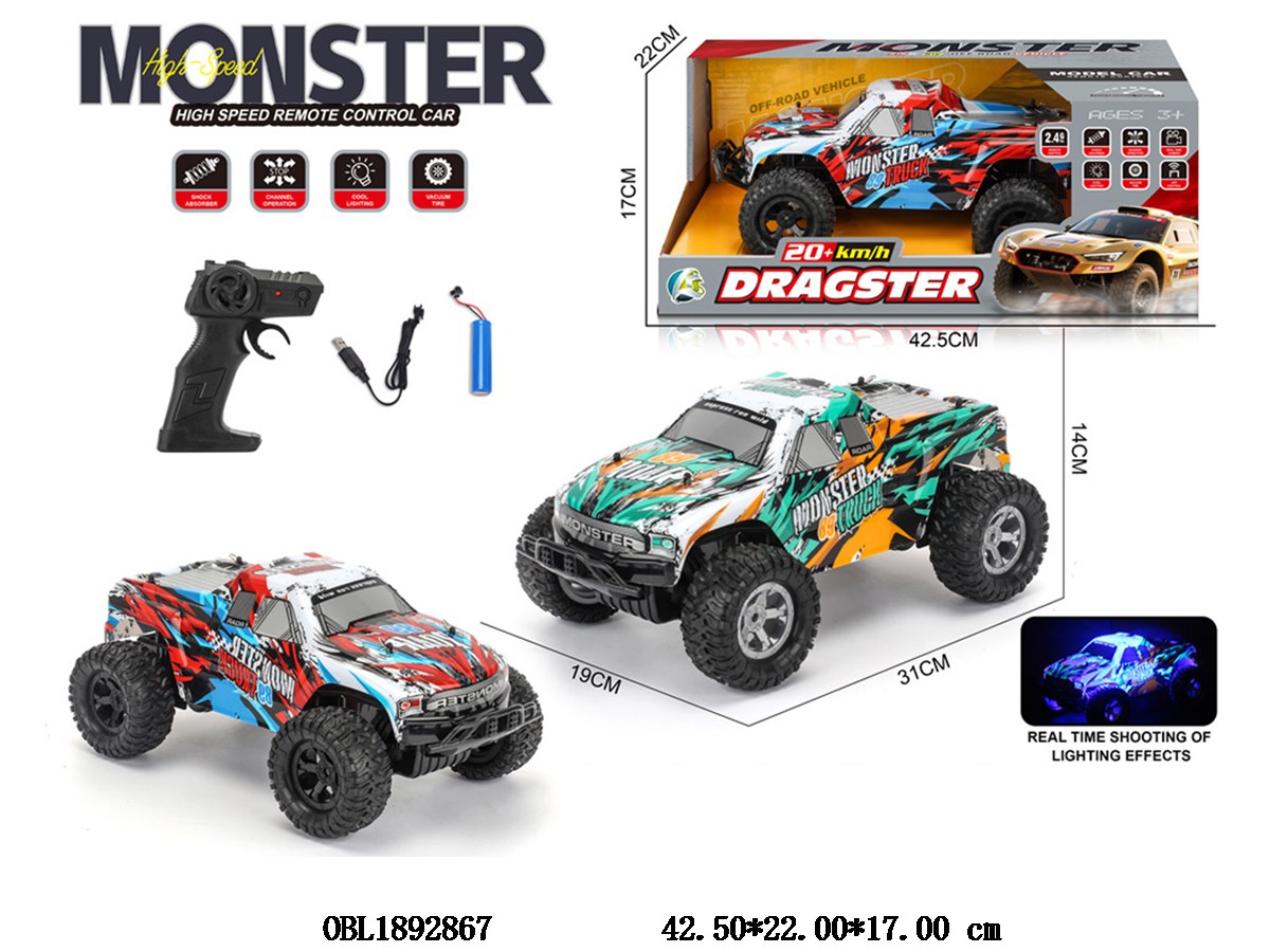 遥控越野车带灯光 配USB线 车身3.7V锂电池包电 遥控器2*AA不包电 2.4G 2色混装