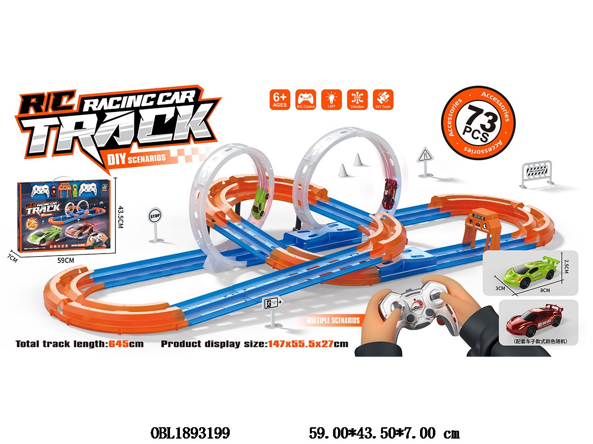 遥控轨道车套装 配2只遥控车 配USB线 车身3.7V锂电池包电 遥控器2*AA不包电 2.4G频率