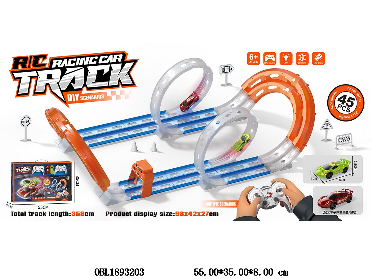 遥控轨道车套装 配2只遥控车 配USB线 车身3.7V锂电池包电 遥控器2*AA不包电 2.4G频率