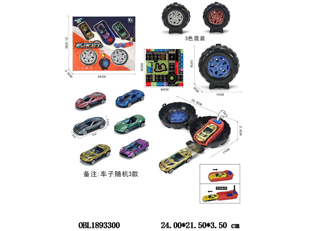 车轮弹射玩具套装 配3只滑行车 车轮3色混装 小车6款混装