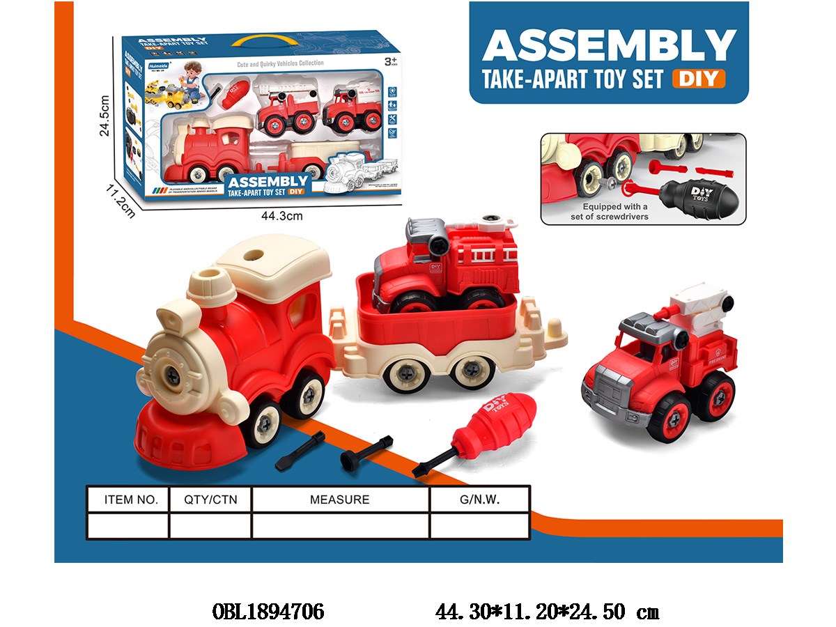 DIY拆装火车 配2只拆装消防车 火车斗2色混装