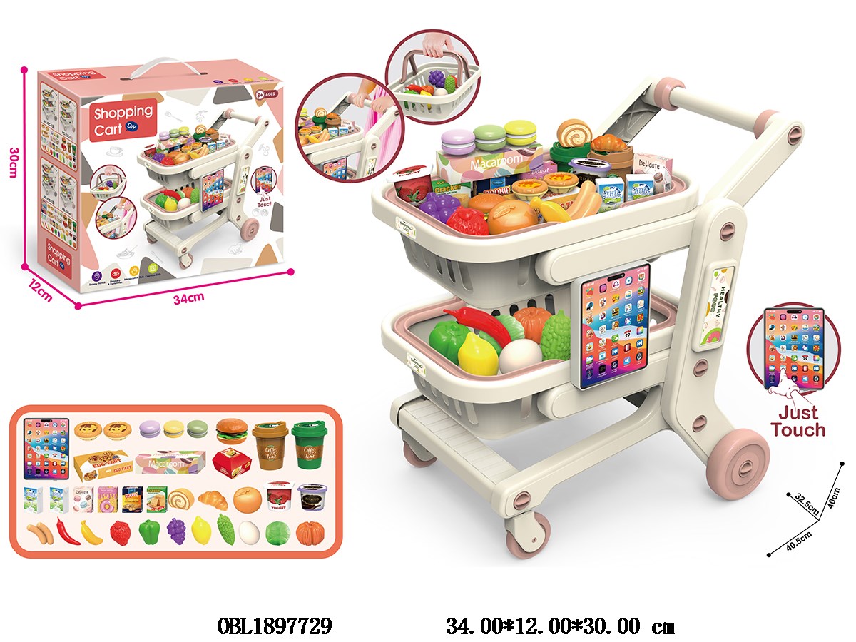 食物/水果套装配双层万向仿真超市购物车 智能平板 3*AAA不包电