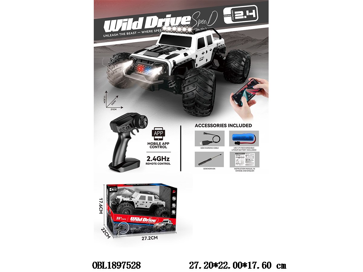 1:18全比例半高速遥控攀爬越野车带灯光 配USB线 车身3.7V包电 遥控器2*AA不包电 2.4G频率