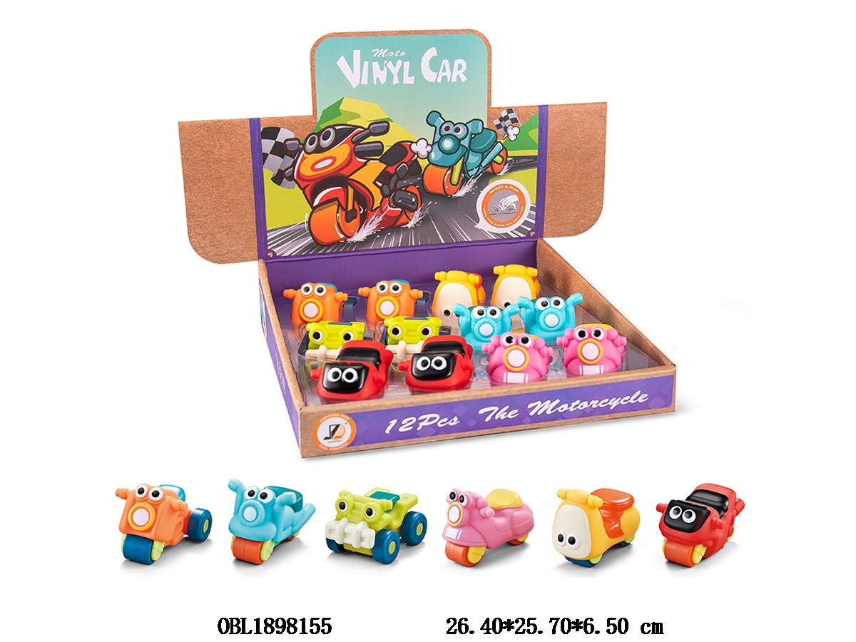 滑行搪胶摩托车 6款混装 12只装一展示盒