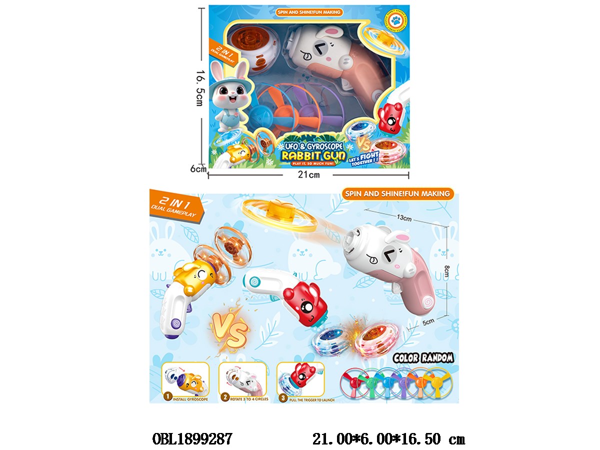 陀螺飞碟枪套装 配1*灯光陀螺 2*AG3包电 3个飞碟 3色混装 飞碟多色混装