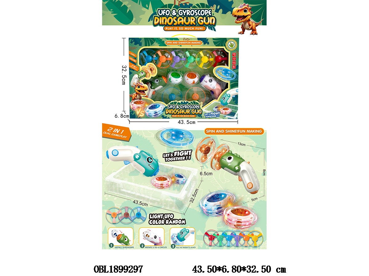 2支装陀螺飞碟枪套装 配2*灯光陀螺 2*灯光飞碟 总8*AG3包电 6个飞碟