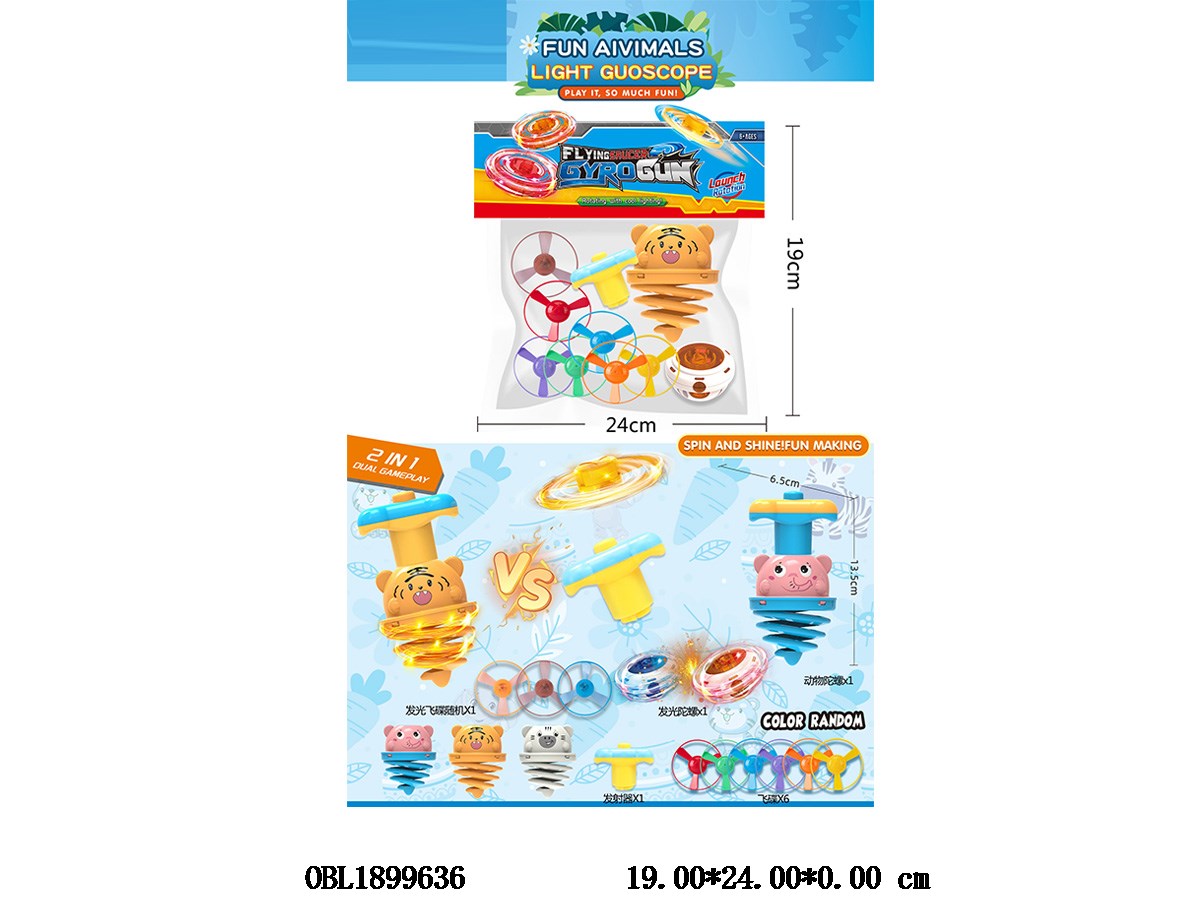陀螺飞碟套装 配1*灯光陀螺 1*灯光飞碟 1*弹簧动物陀螺 总6*AG3包电 配6个飞碟