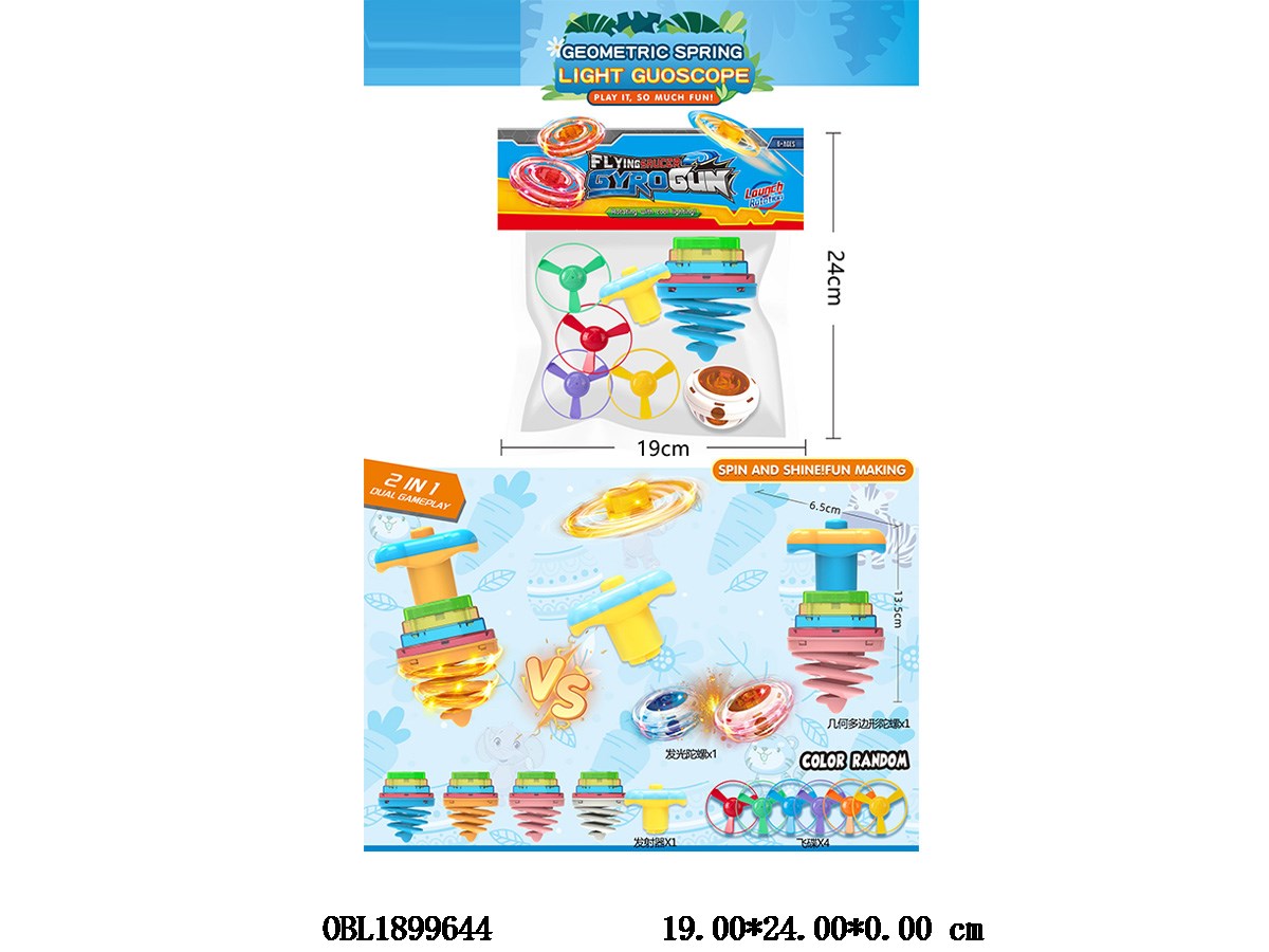 陀螺飞碟套装 配1*灯光陀螺 1*弹簧几何陀螺 总4*AG3包电 配4个飞碟