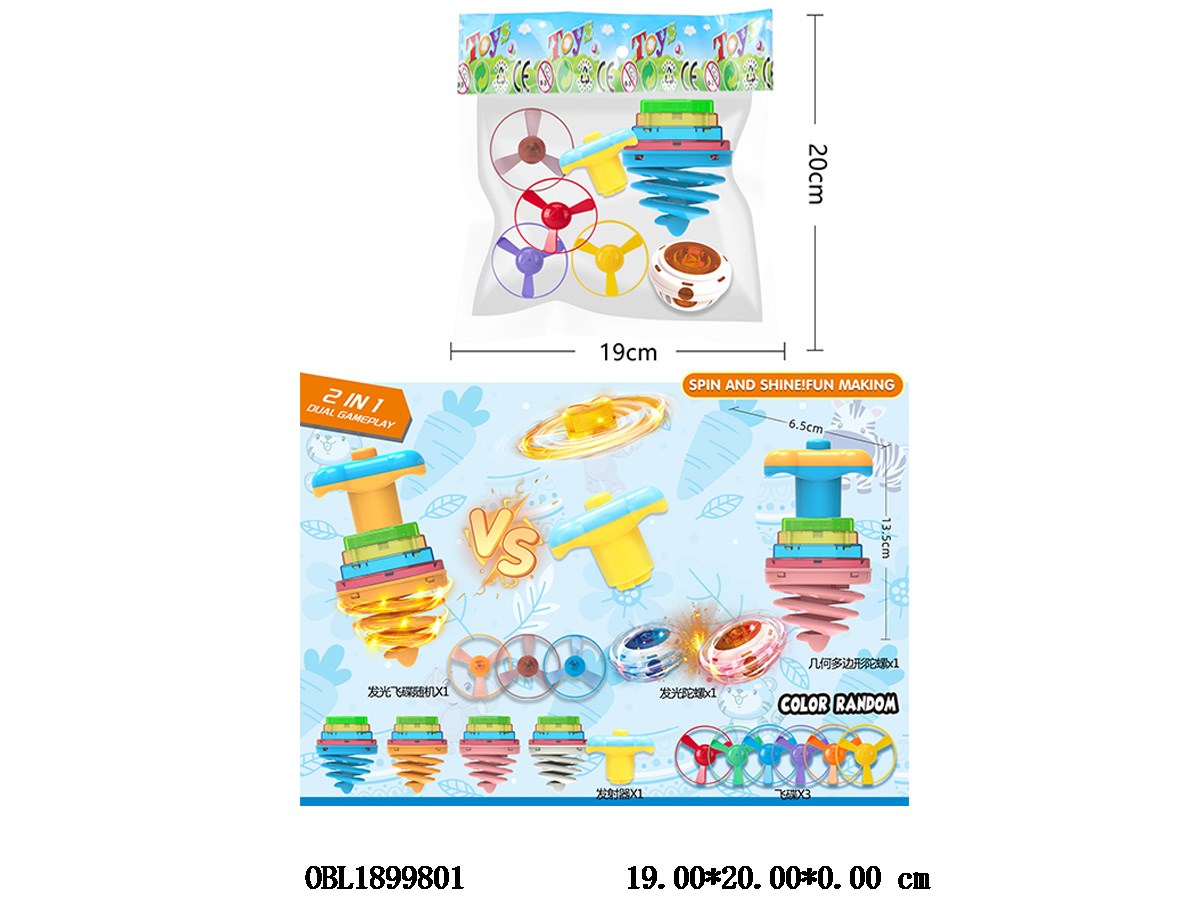陀螺飞碟套装 配1*灯光陀螺 1*灯光飞碟 1*弹簧几何陀螺 总6*AG3包电 配3个飞碟