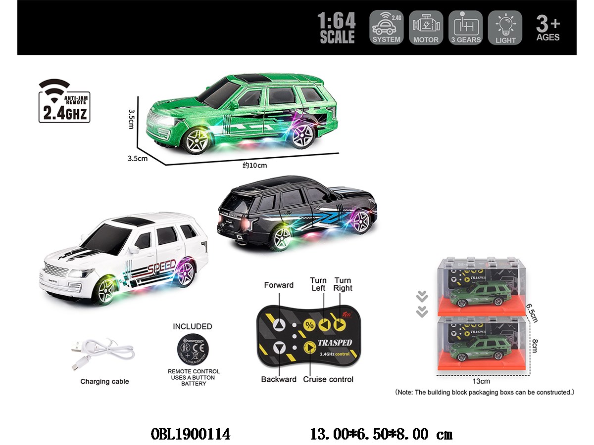 首页 > 遥控车 > 1:64 合金遥控车 带灯光 配USB线 3.7v锂电池包电 遥控1*CR2032包电 手机APP遥控 2.4G频率 3色混装